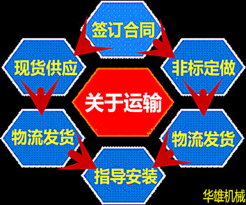 華雄機(jī)械對(duì)于常規(guī)產(chǎn)品現(xiàn)貨供應(yīng),當(dāng)天訂貨,當(dāng)天發(fā)貨,購買便捷。我公司按照合同規(guī)定的時(shí)間、地點(diǎn),把貨物運(yùn)輸?shù)侥康牡?。貨物托運(yùn)后,我公司按照物流變更隨時(shí)通知收貨人。對(duì)于非標(biāo)定制,我公司在預(yù)定工期內(nèi)完工之后及時(shí)通知客戶,如客戶有指定物流或快遞,我們會(huì)按照客戶要求發(fā)貨,如果客戶無特殊制定物流或快遞,我公司默認(rèn)德邦物流發(fā)貨。